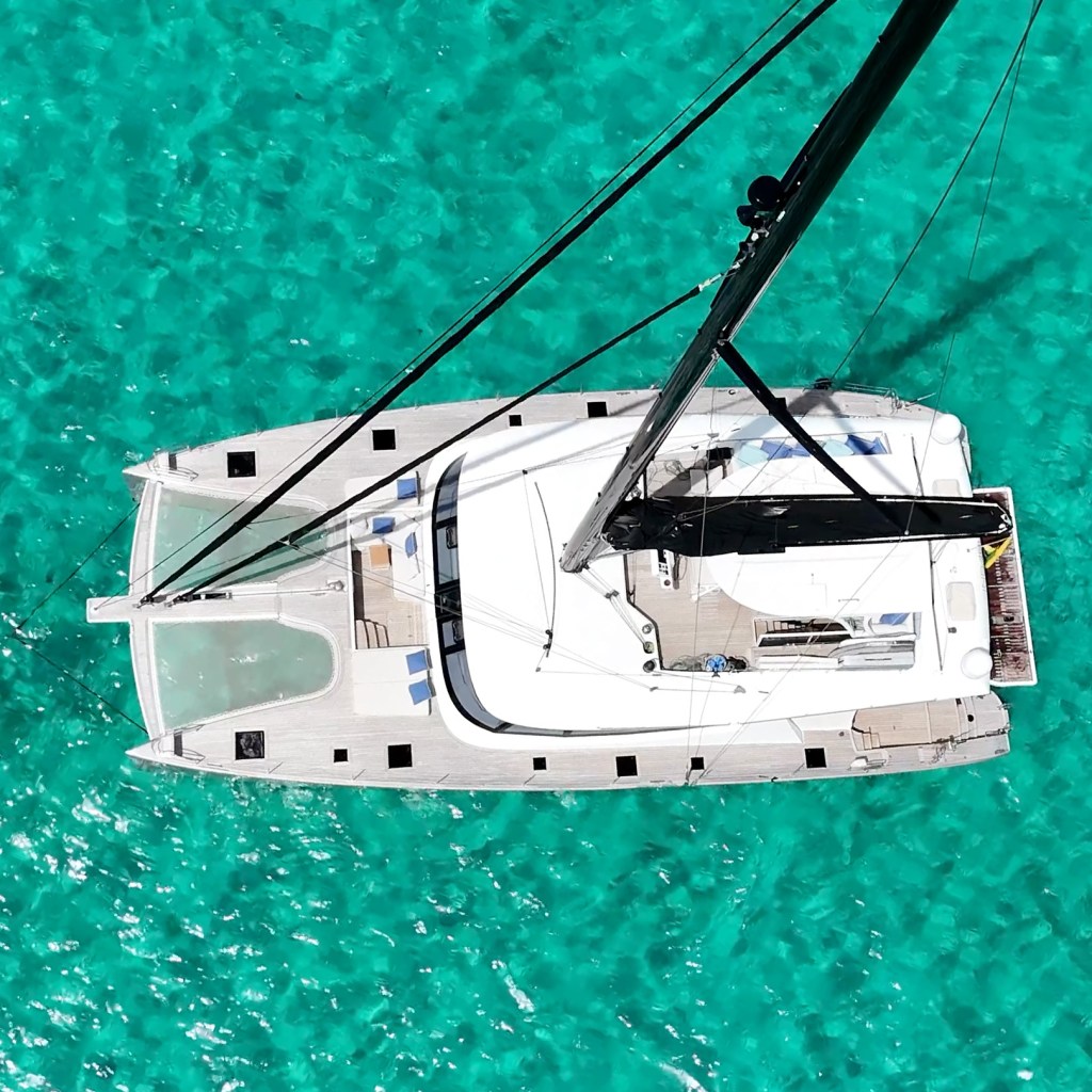 This catamaran is the ideal vessel for exploring the crystal-clear blue waters of the Bahamas, offering comfort, style, and an unforgettable sailing experience.